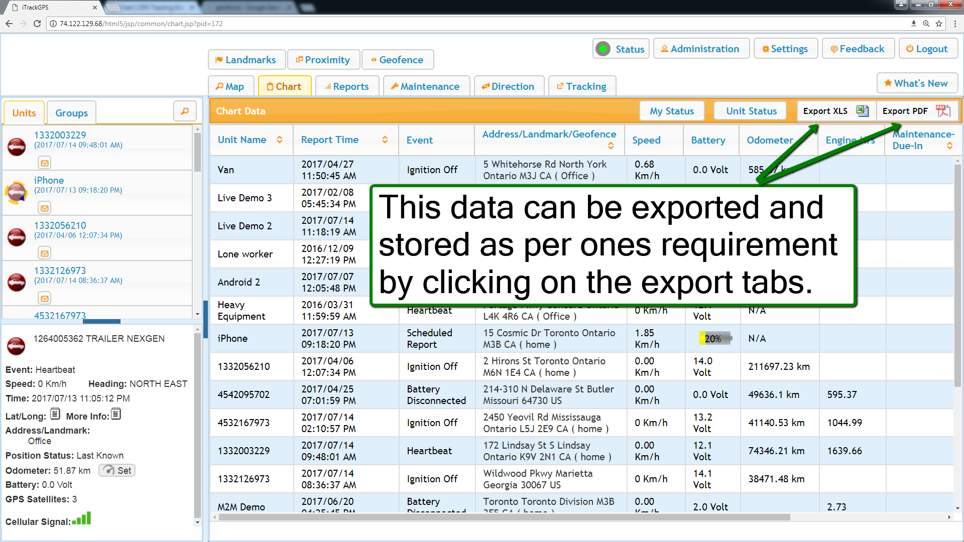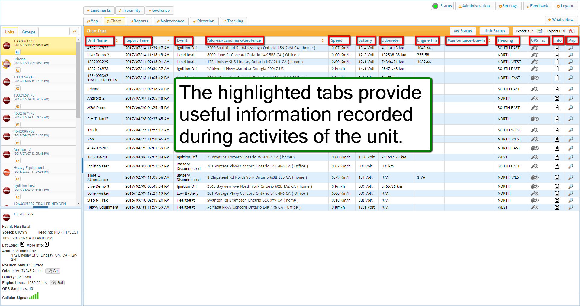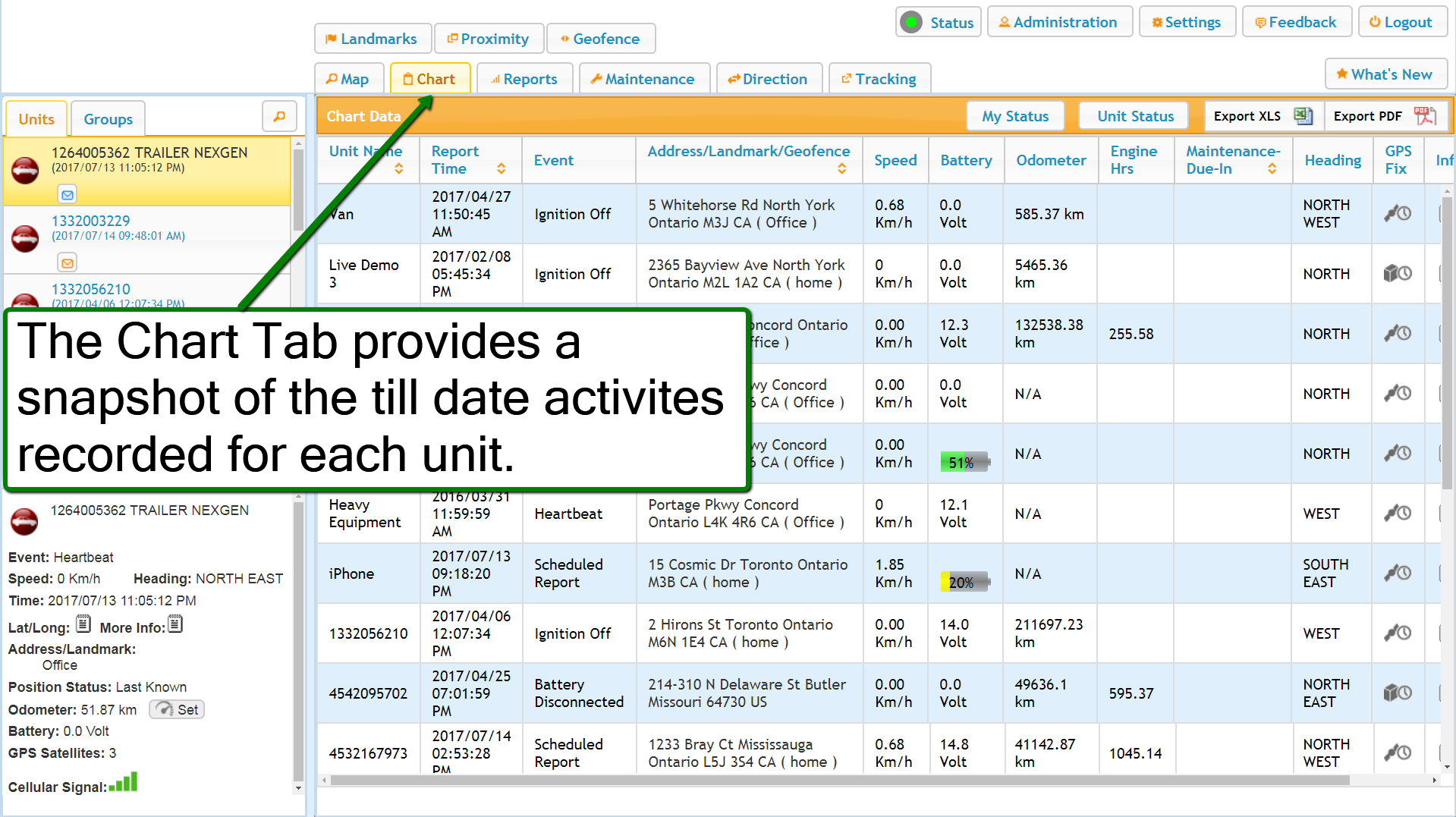 Vehicles at Landmark/Geofence Report